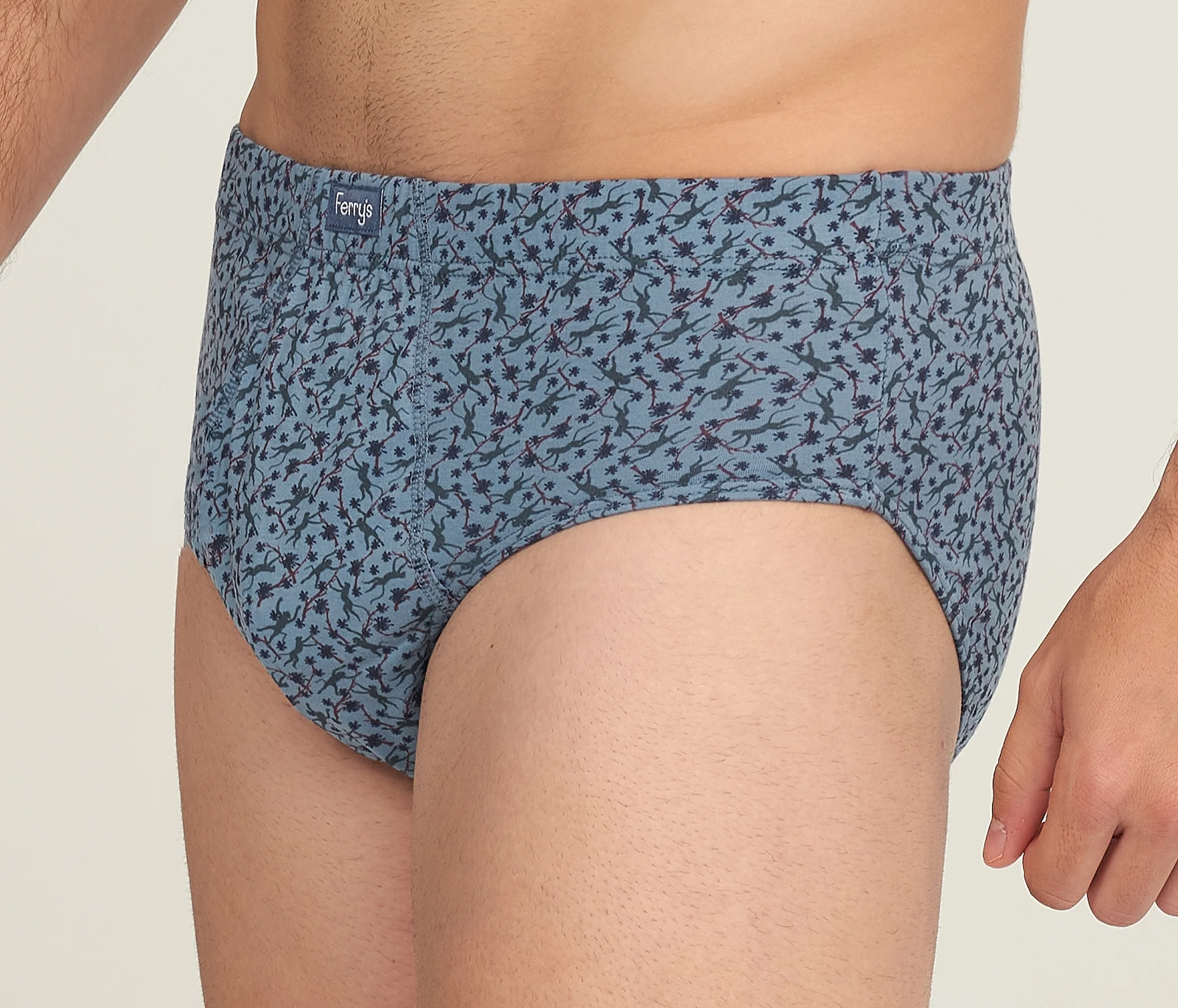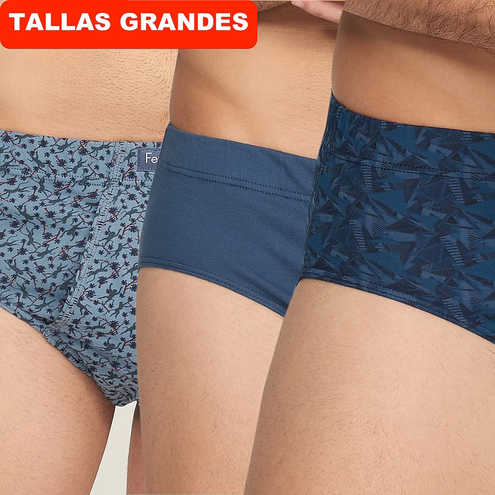 Pack de tres slips abiertos en tejido de 100% algodón. Dos slips estampados en forma de pajaritas y flores, y uno liso azul.