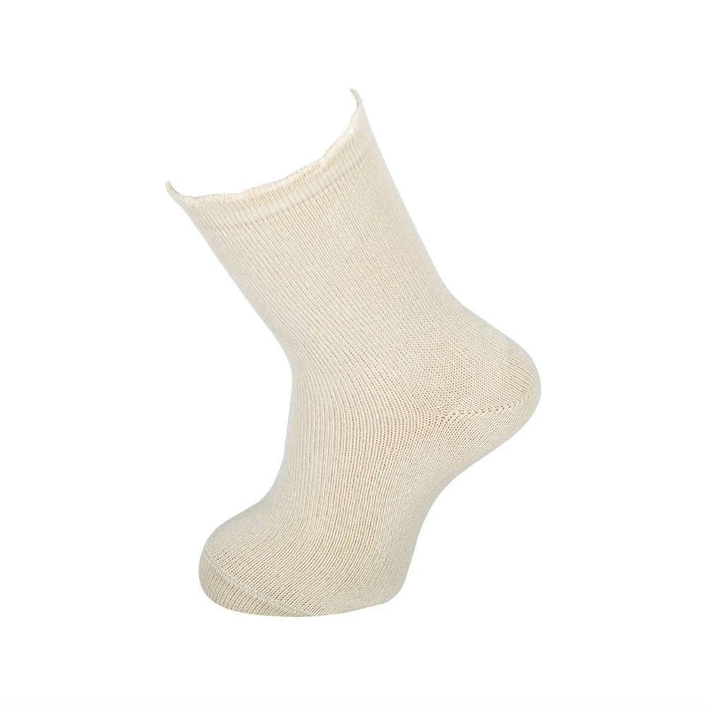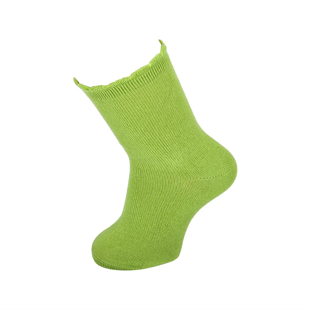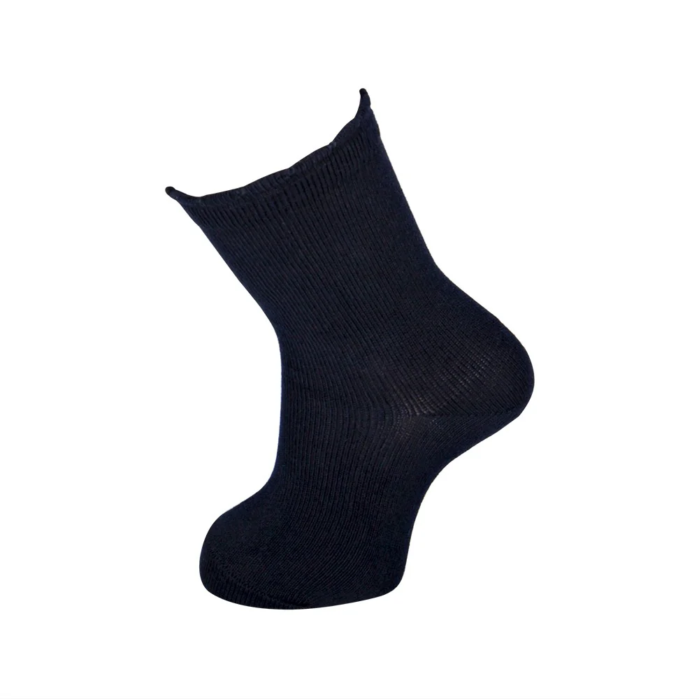Calcetín liso con tejido de invierno. Tiene un puño en forma de ondas que no aprieta y no se cae. Las costuras planas quedan por encima del pie y no molestan. Los talones están reforzados para evitar que el calcetín se rompa en esa zona de más uso. Disponible en una alta gama de colores que no decoloran con los lavados. El tejido no hace bolas.