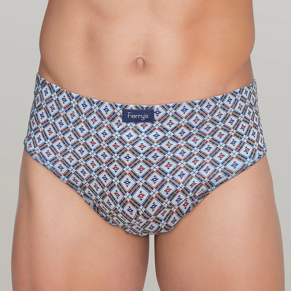 Pack de 3 slips cerrados, 2 estampados y 1 liso en tejido de 100% algodón. En tonos azul y gris con dibujo de rombos. Elegantes y cómodos a la vez.
