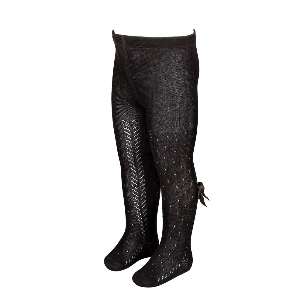 Estos leotardos calados de entretiempo están hechos de infinidad de detalles y calidad. La cintura está formada por un tejido elástico de una anchura específica que no aprieta en absoluto y que no se rompe, como lo podría hacer una goma. El tejido tiene una alta composición en algodón, y también poliamida para dotar de mayor durabilidad y comodidad. Es una prenda que resiste mucho uso y lavados sin dañarse, deformarse y sin hacer bolas. Las costuras de los pies son finas y quedan por encima de los dedos sin molestar por tanto. La parte del pie tiene forma como un calcetín y no es por tanto un tubo que no se adapta a esta zona tan importante. El algodón es perlé hilo de Escocia, que es muy suave y transpirable para que no pasen calor. El calado tiene forma de espigas y puntos, y el lazo al lado de la pierna hace que estos leotardos sean una maravilla.
