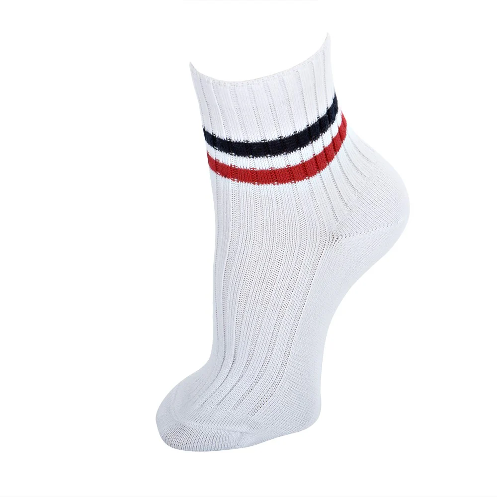 Dos pares de calcetines tobilleros de alta composición de algodón peinado, altamente transpirable. Con rayas marino y roja tipo tenis. De tejido de todo tiempo y con un puño muy fino que no aprieta. Talones y punteras reforzadas para asegurar la máxima durabilidad, y de un tejido de canalé que se adapta a todo el pie sin oprimir y sin caerse. Resiste incontables lavados sin hacer bolas ni estropearse. Un clásico de Ferry’s.