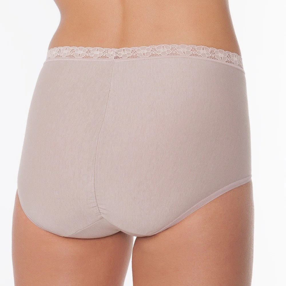 Braga alta de mujer con efecto segunda piel y realce de forma. Fabricada con un tejido fino con elasticidad en ambos sentidos, acoplándose a la piel. Puntilla de adorno elástica en la cintura. Confort y sujeción van de la mano.