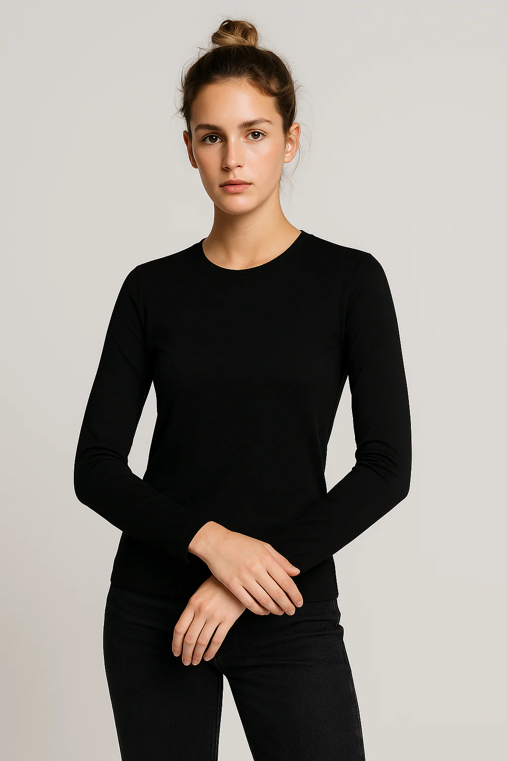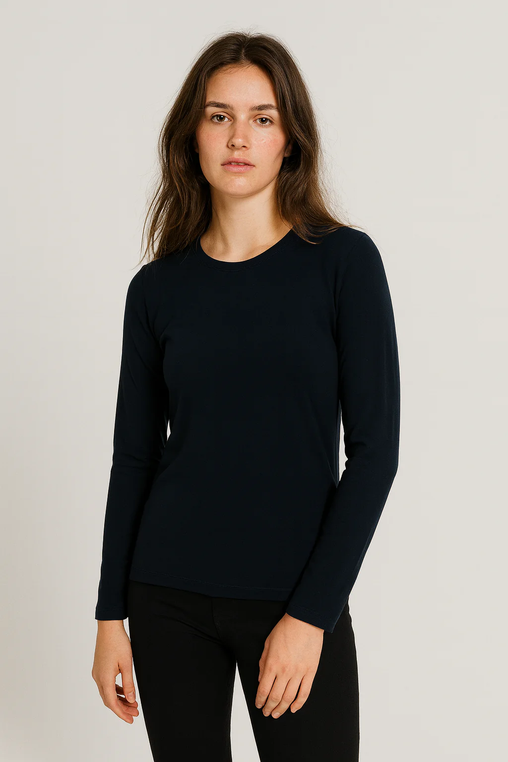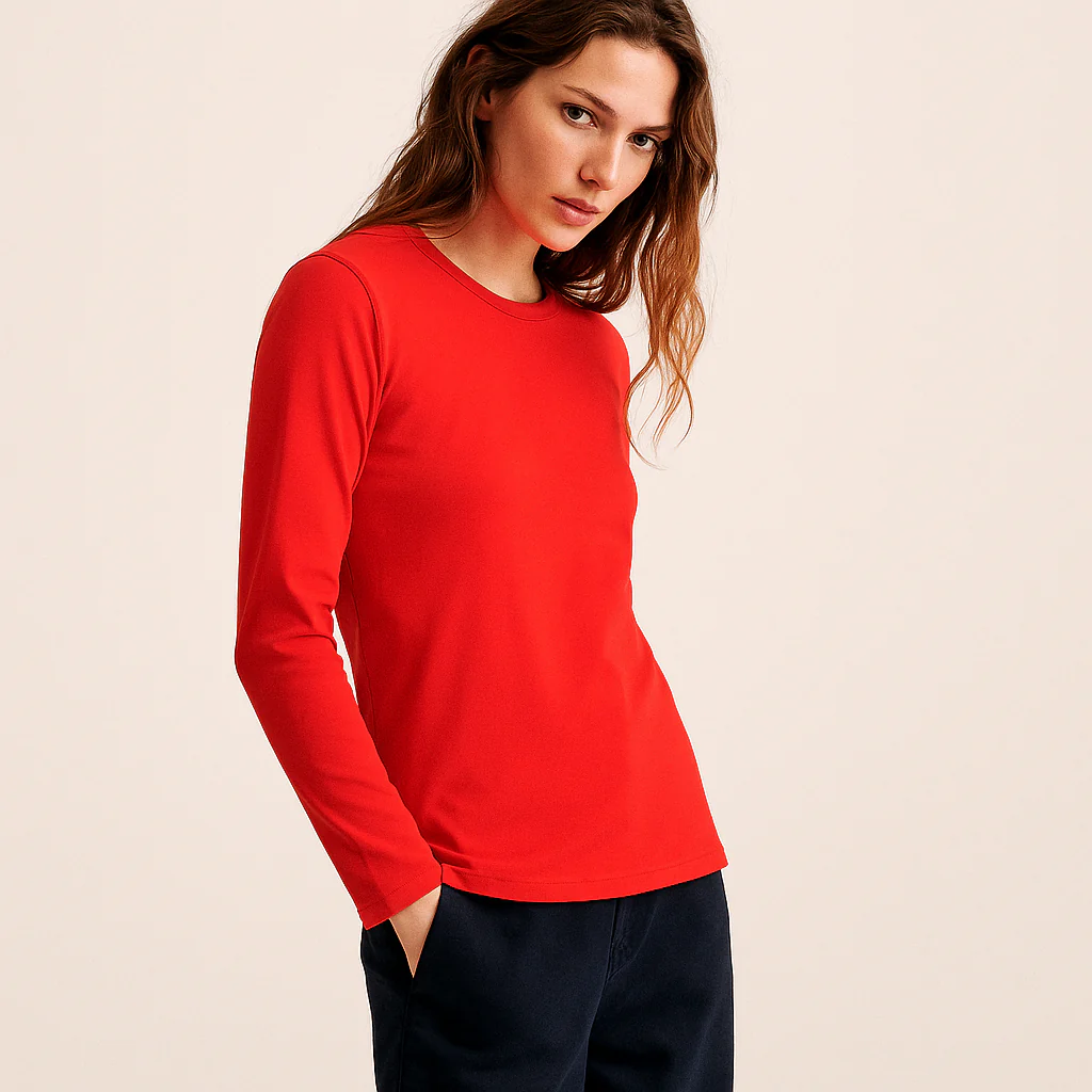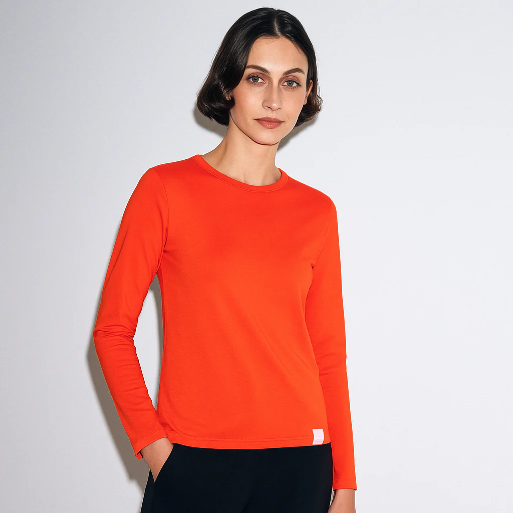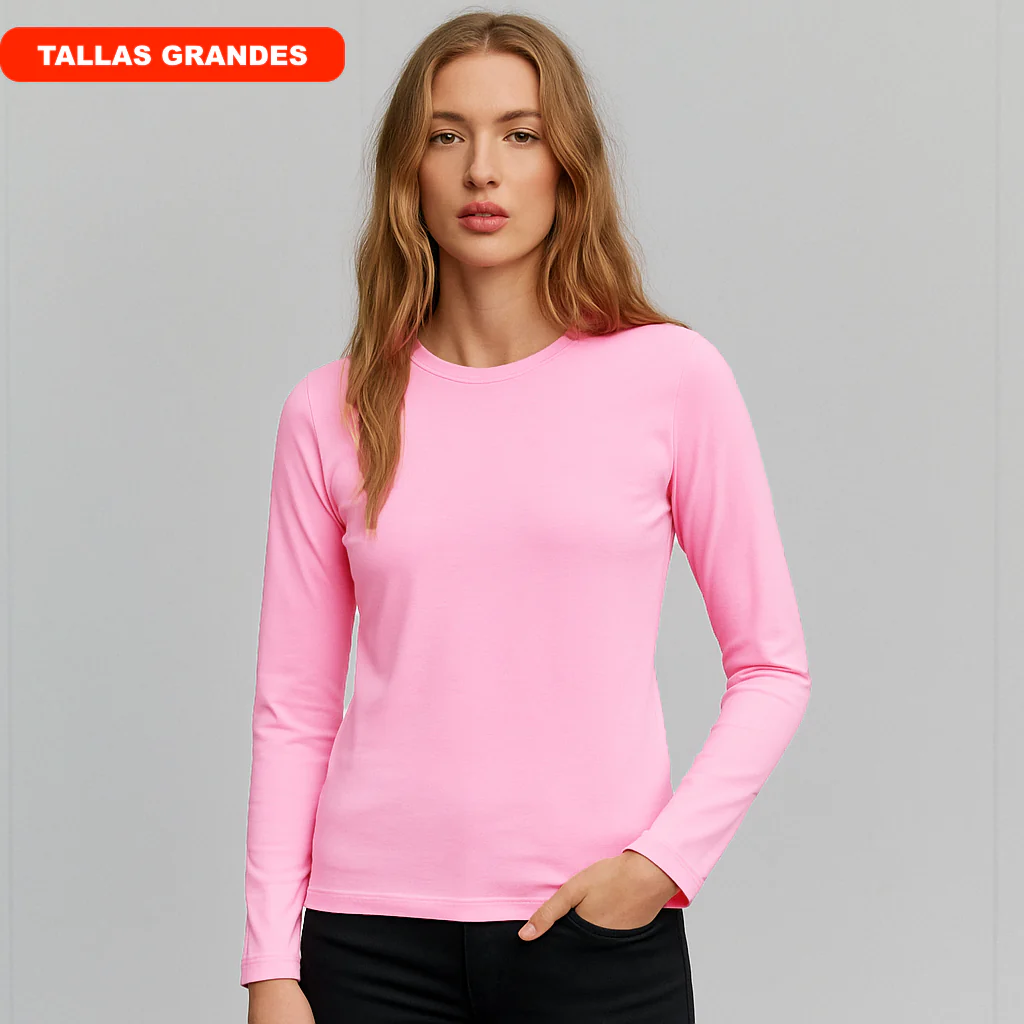 Camiseta de manga larga con tejido liso de alta composición en algodón peinado. Con un tejido especial en el cuello y puños para que no se desboque con el uso. Material que se adapta al cuerpo y que no pierde su forma. El tejido es anti-pilling, que no hace bolas. Los colores no se destiñen con los lavados.