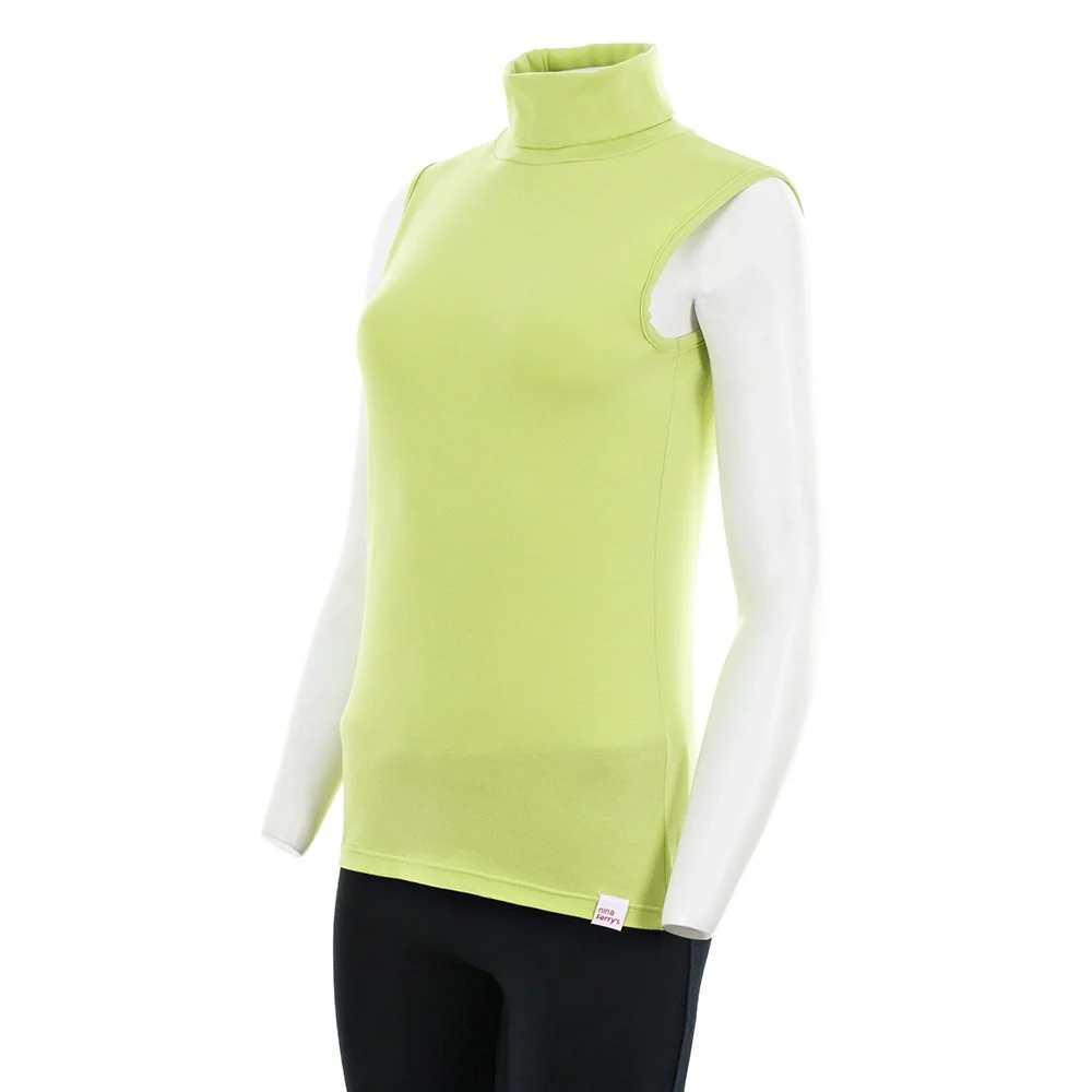 Camiseta sin mangas con cuello alto y de alta composición en algodón peinado. Gracias a su pequeño porcentaje en elastano y a la forma del tejido, queda algo ceñida al cuerpo y no se deforma con el uso. Queda ideal tanto exteriormente como debajo de alguna prenda, siempre abrigando el cuello. El tejido es anti-pilling, no hace bolas, y los colores resisten incontables lavados.