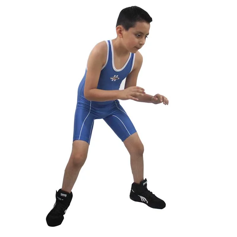 Butarga Infantil Fire Sports de tirante para Luchas asociadas o Wrestling kids Singlet Unisex Azul