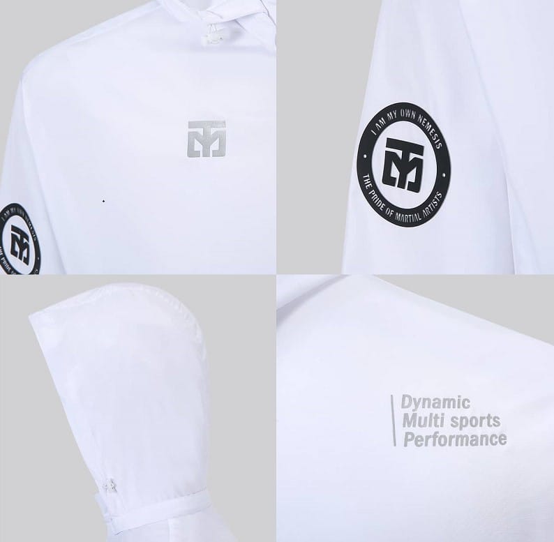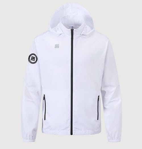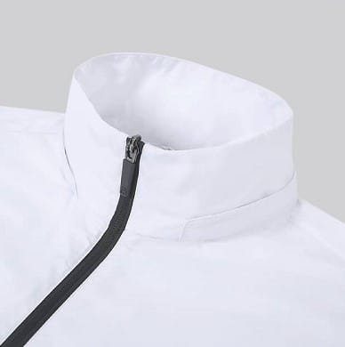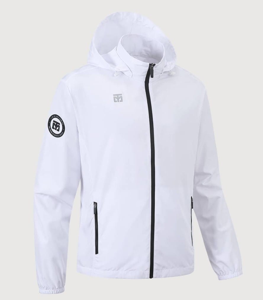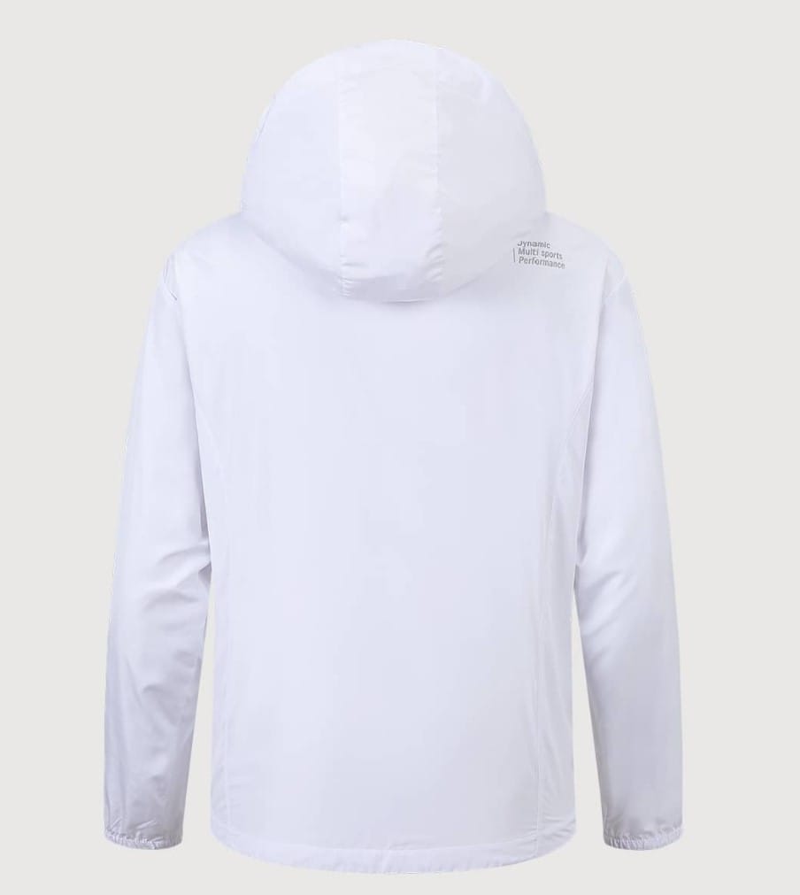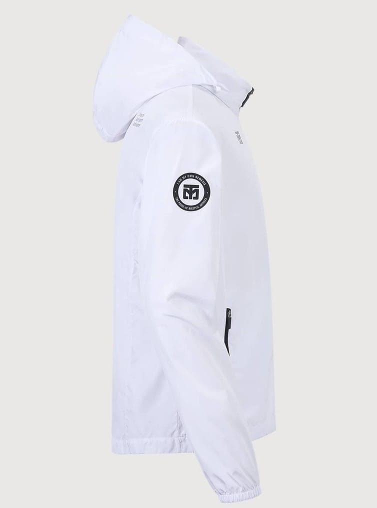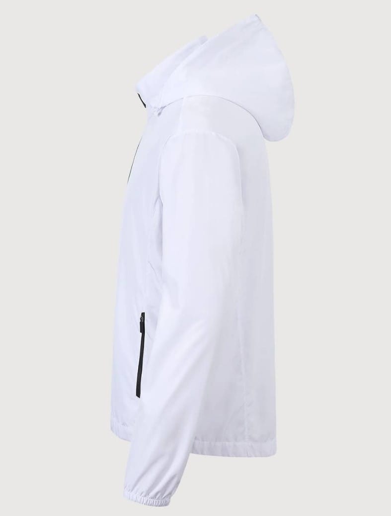 Cortavientos blanco ultraligero. Una chaqueta cortavientos confeccionada con tejido de nylon resistente al viento y al agua para mayor funcionalidad. Capucha desmontable.