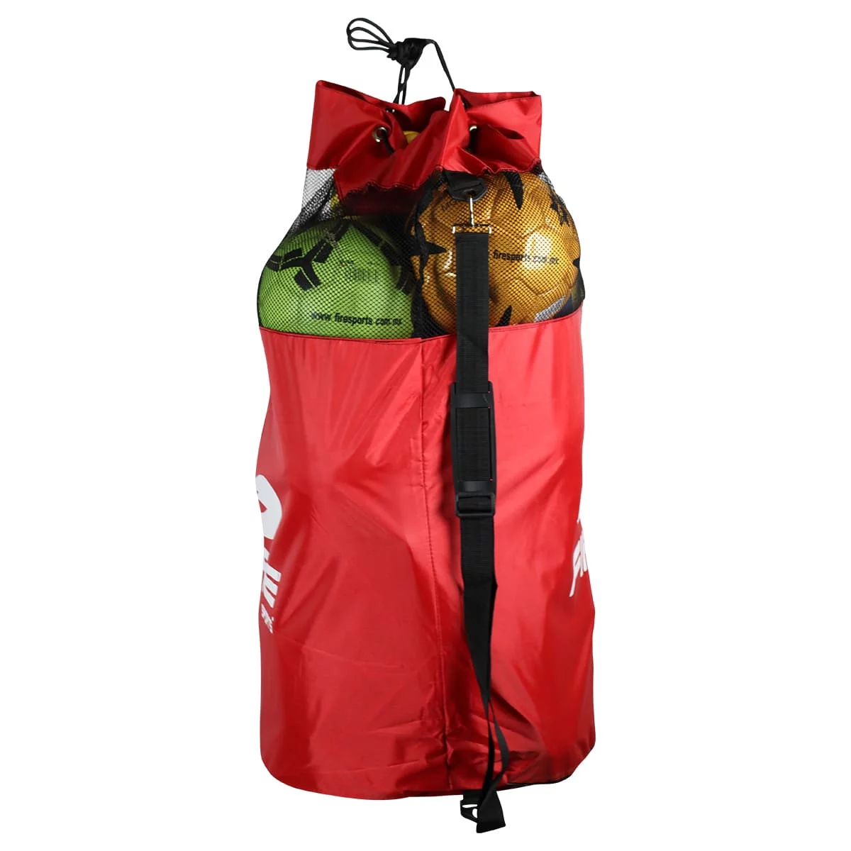 Está diseñada para transportar entre 12 a 15 balones aproximadamente, y está construida en la parte superior con una red abierta de malla y un práctico cierre de cordón resistente.