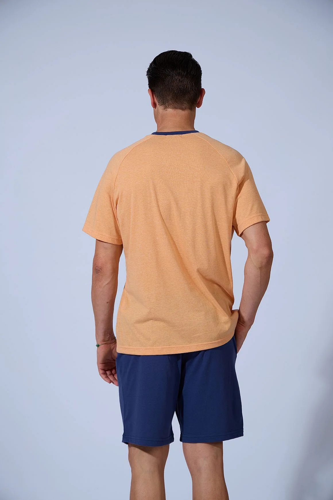Pijama de hombre con camiseta lisa estampada SURFERS y pantalones cortos con bolsillos.